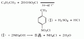 2. 將對(duì)磺酰氯與純氨依次加入冰水中,控制對(duì)磺酰氯與純氨的質(zhì)量配比為1∶ 0.2,攪拌下進(jìn)行反應(yīng),冷卻并控制溫度為70℃。